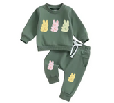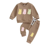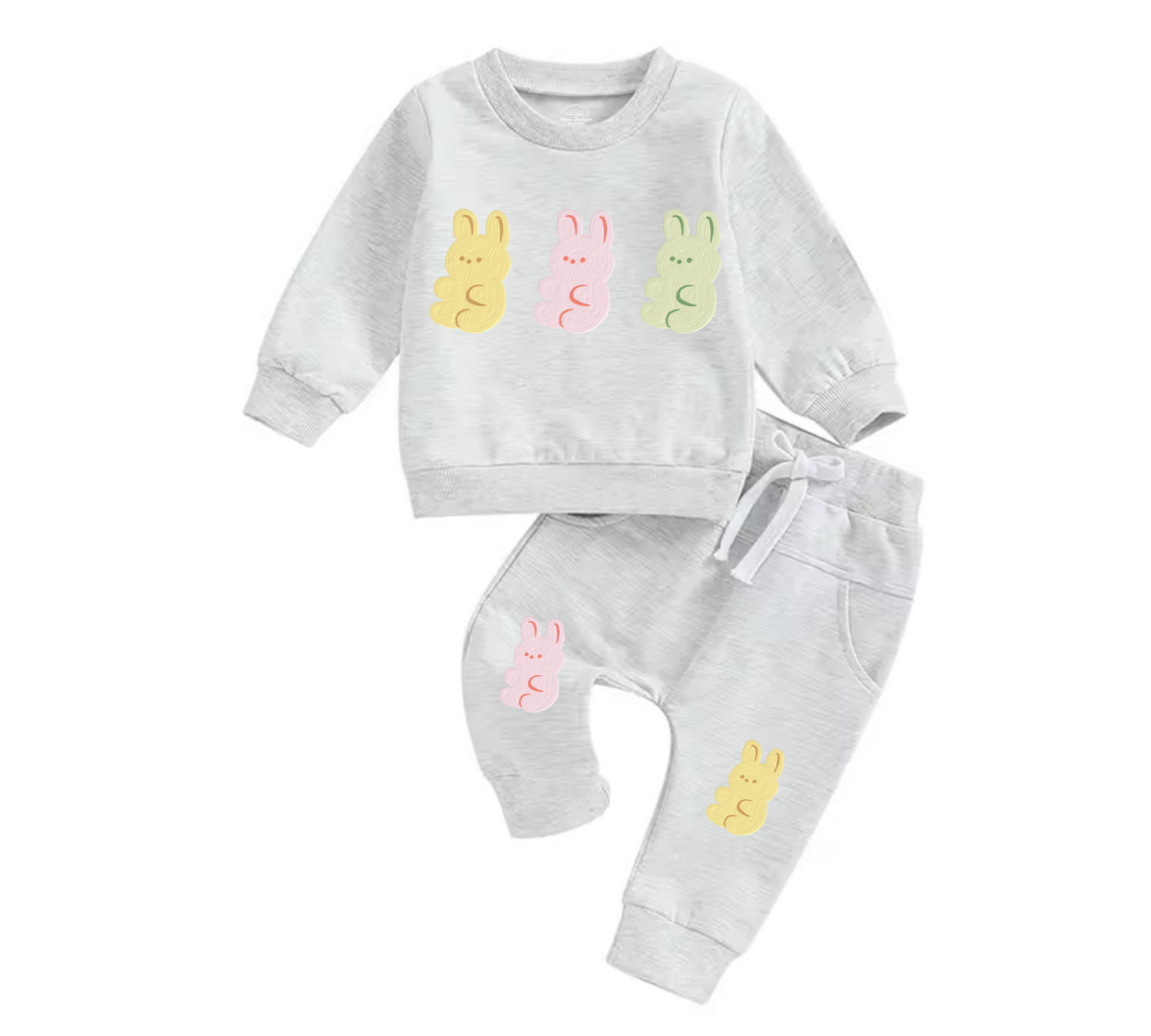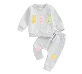 Adorable soft and cozy baby jogger outfit with cute bunnies print on top and matching bunnies print on pants. ❤️