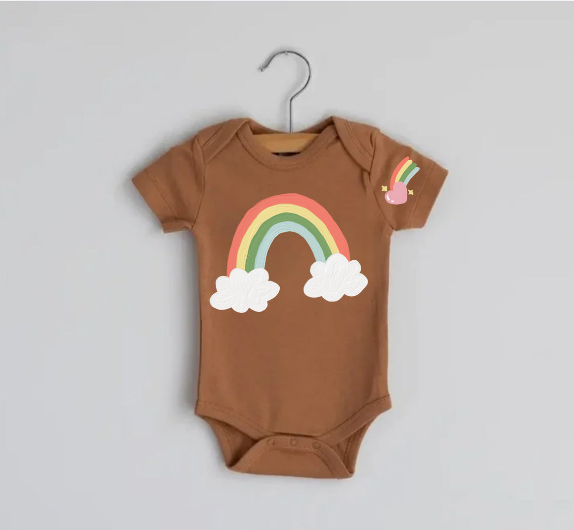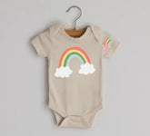 Adorable soft cotton baby bodysuit with cute rainbow print and matching print on sleeve. ❤️