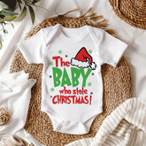 Adorable soft cotton baby Christmas bodysuit with cute baby who stole christmas print. ❤️