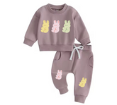 Adorable soft and cozy baby jogger outfit with cute bunnies print on top and matching bunnies print on pants. ❤️