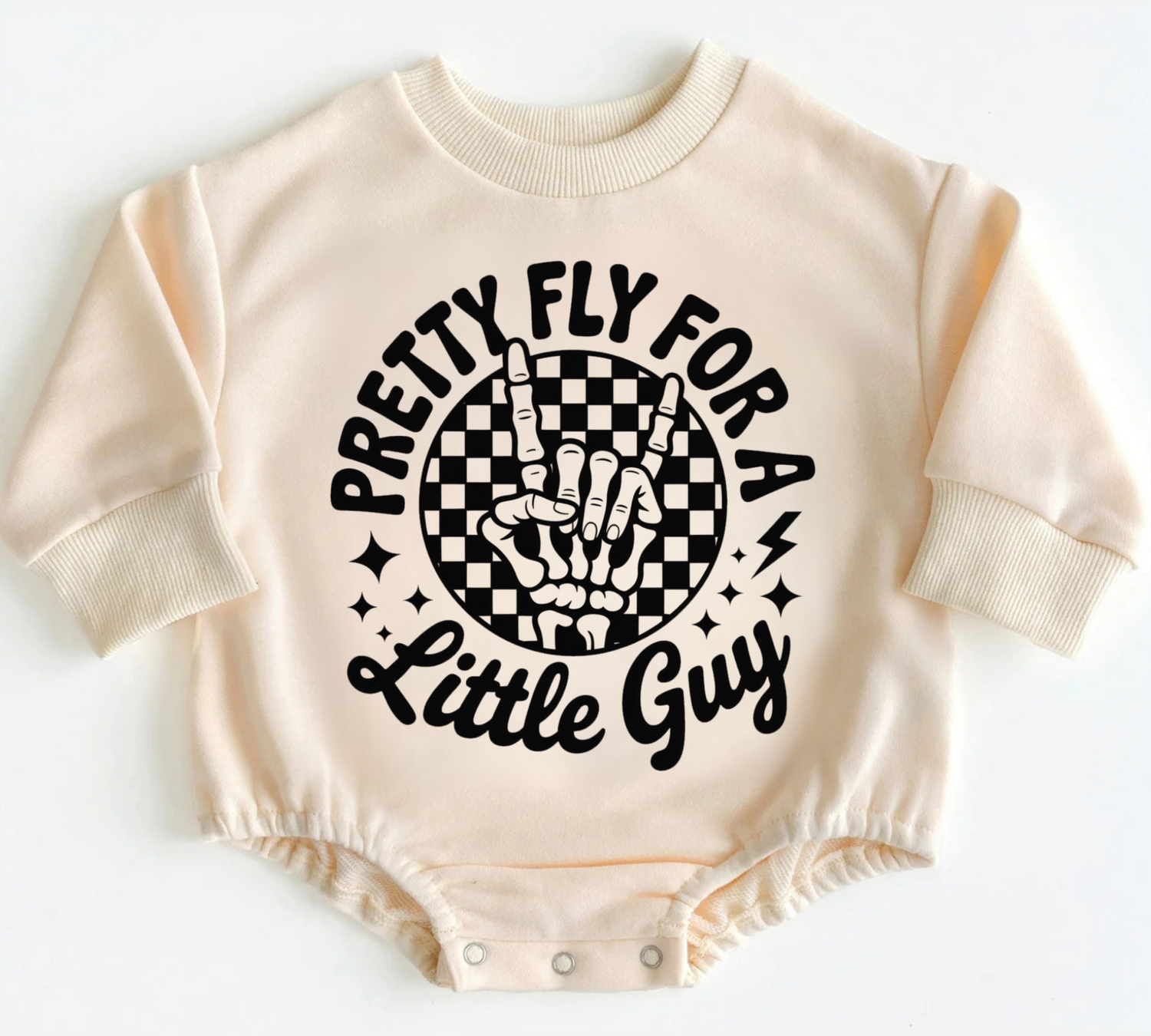 Adorable & unique soft baby French Terry sweatshirt rompers with cute checkered pretty fly for a little guy print. 🥰