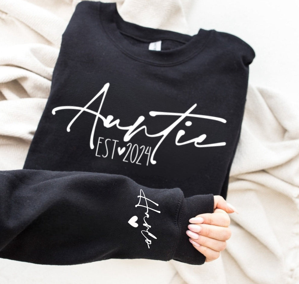 Adorable, warm, soft and cozy est Auntie with children’s names on sleeve. 🥰