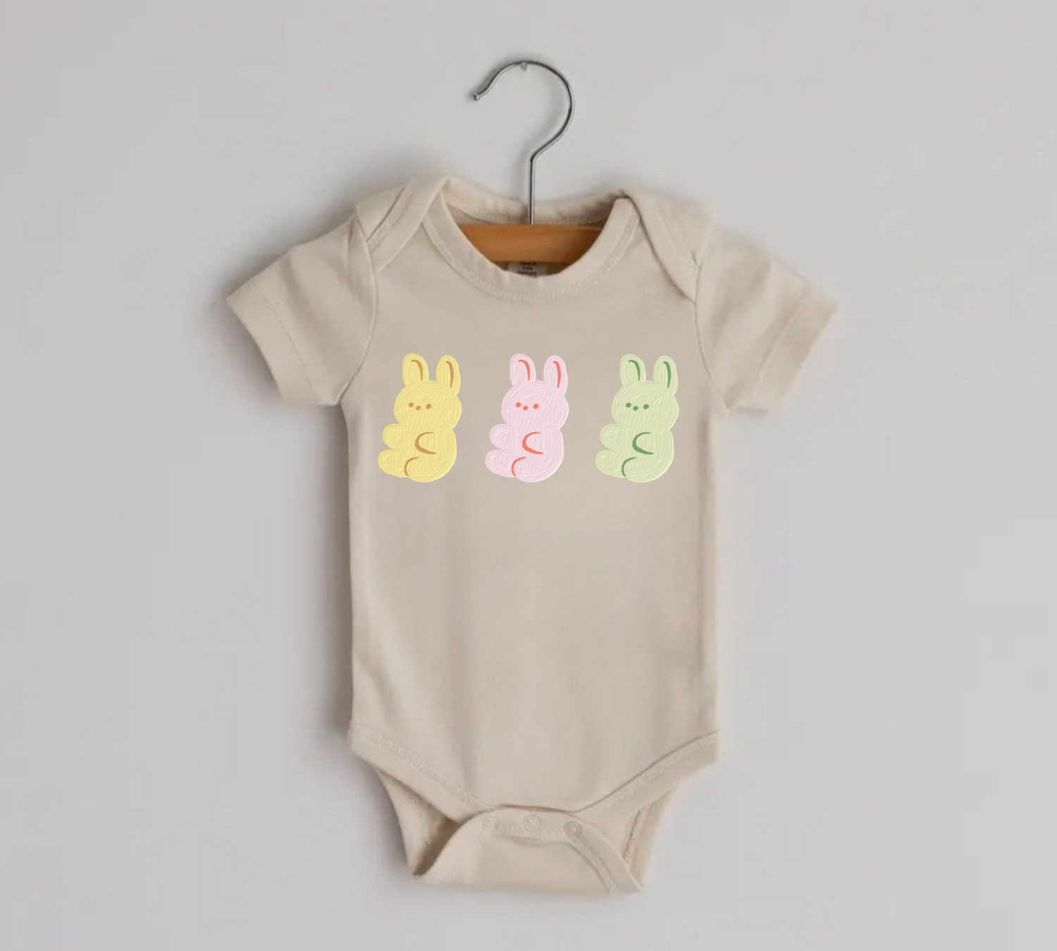 Adorable soft cotton baby bodysuit with cute bunnies print. ❤️