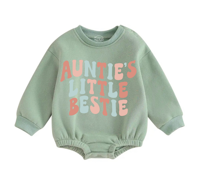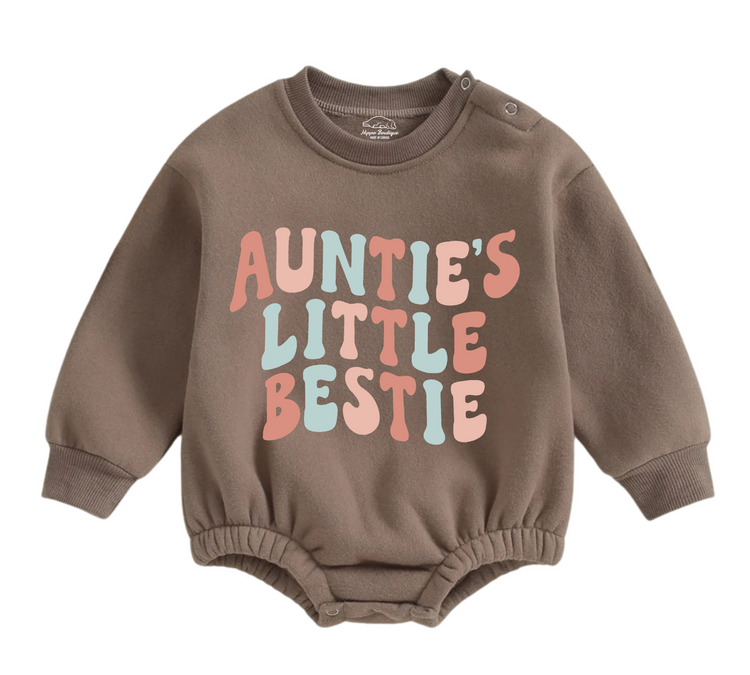 Soft warm fleece Auntie’s Little Bestie Oversized Sweatshirt Romper