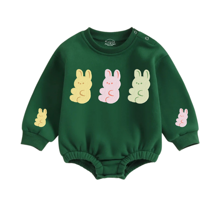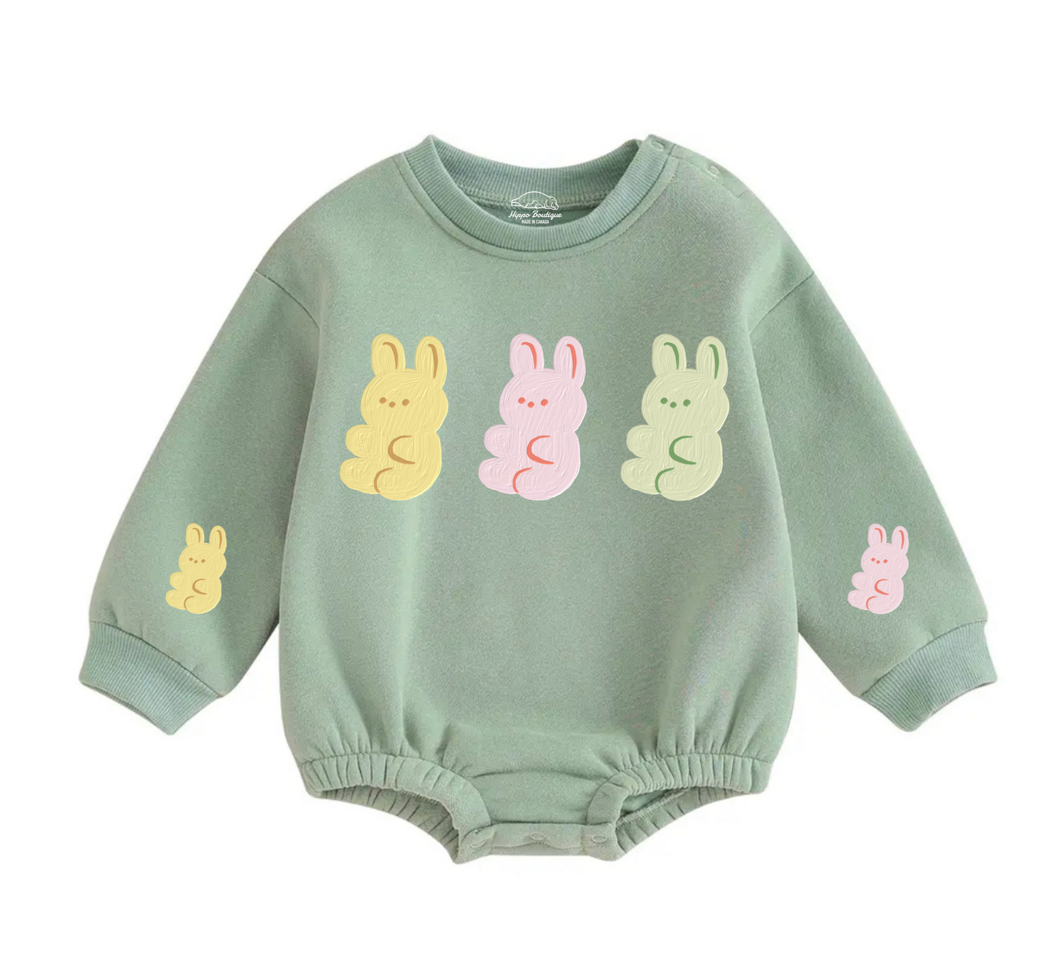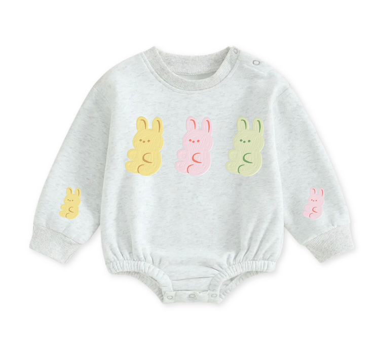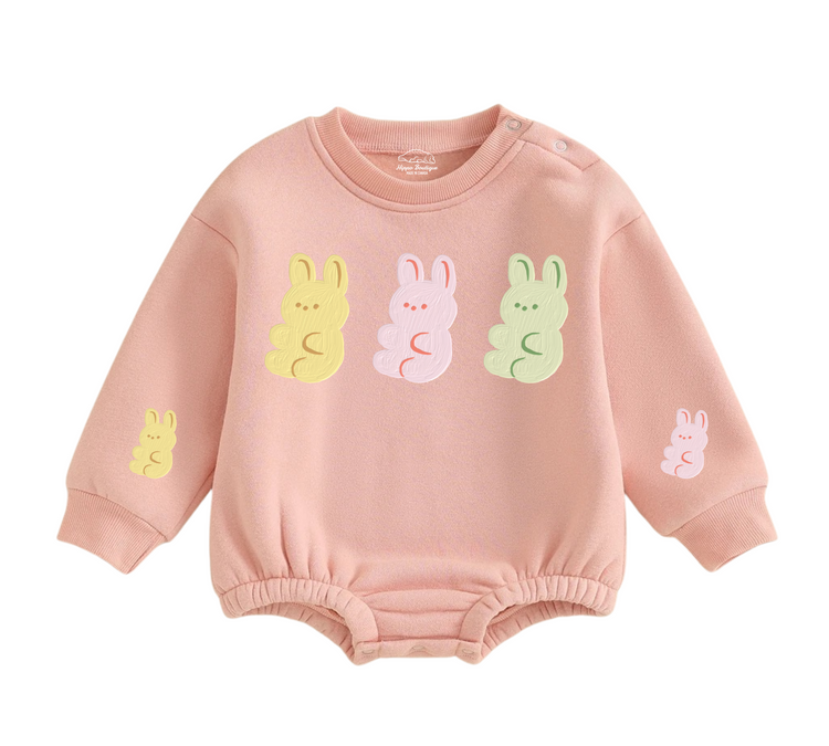 Adorable warm Baby Oversized fleece Sweatshirt Romper with snaps with cute bunnies print and matching print on sleeve. ❤️
