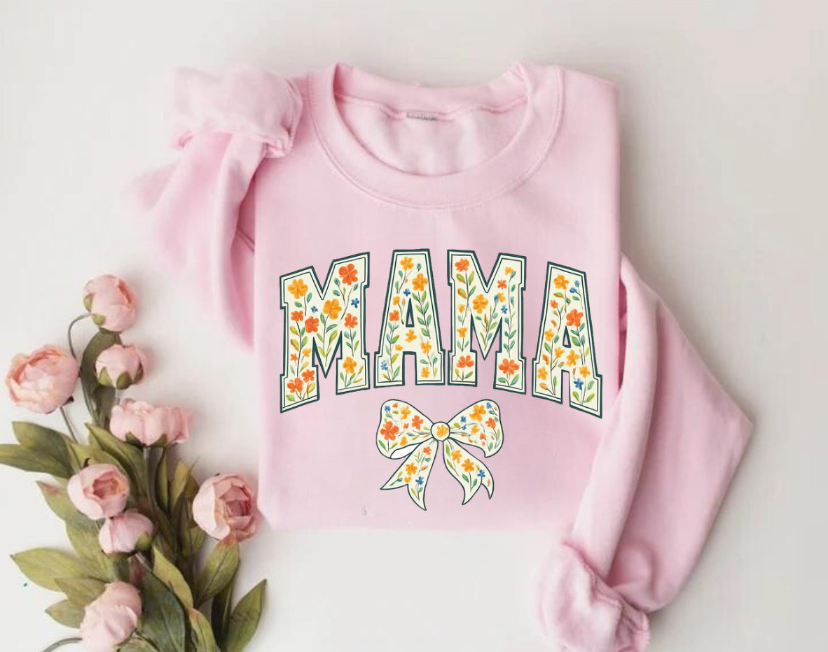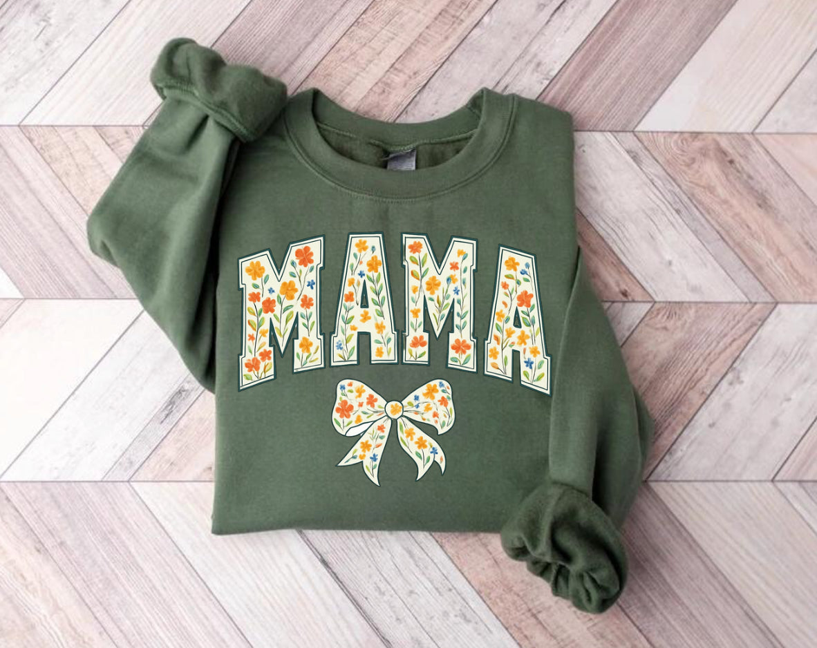 Beautiful, cute and cozy sweatshirts with gorgeous Mama Wildflower with bow print. ❤️